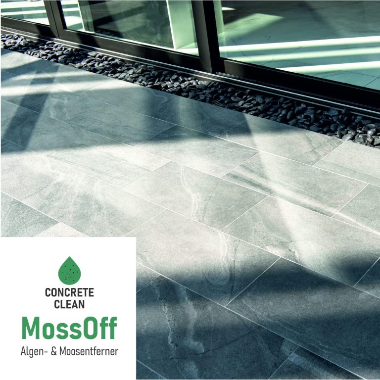 CONCRETE CLEAN MossOff wurde speziell dafür entwickelt, Algen, Moos und Flechten effektiv zu zersetzen, ohne dabei Ihre Terrassenplatten, Pflastersteine oder Natursteine anzugreifen oder deren Oberfläche aufzurauen.